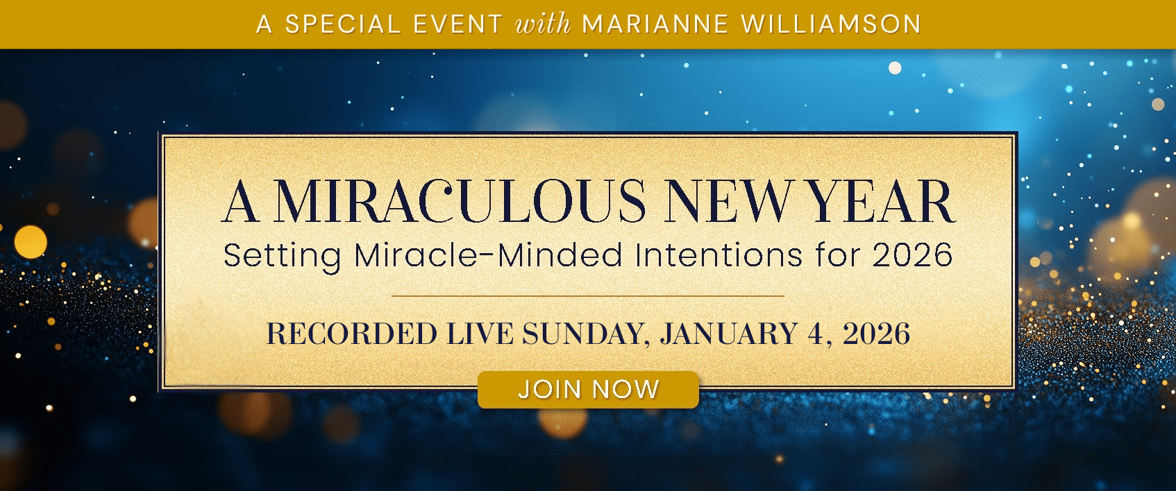You’re invited to join Marianne for A Miraculous New Yeara special 2-hour inquiry into the dynamics of miracle-mindedness, specifically casting the light of spiritual understanding onto the year ahead.